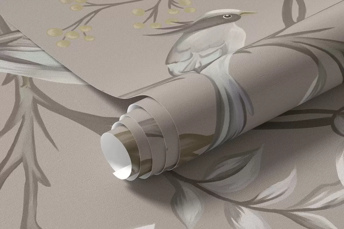 Fototapet Ornament floral cu păsări pe fundal neutru Nr. w05127v3