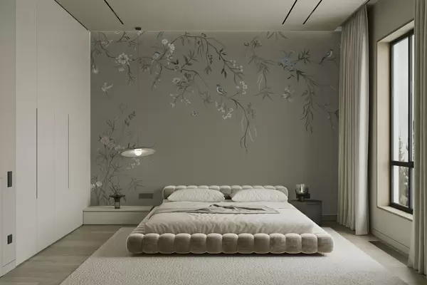 Fototapet Motiv floral cu păsări pe fundal gri Nr. w05127v4