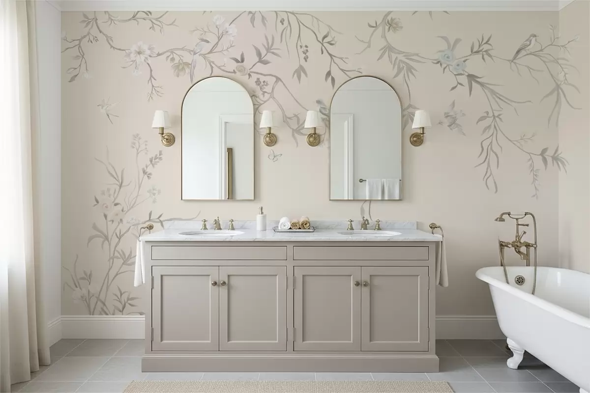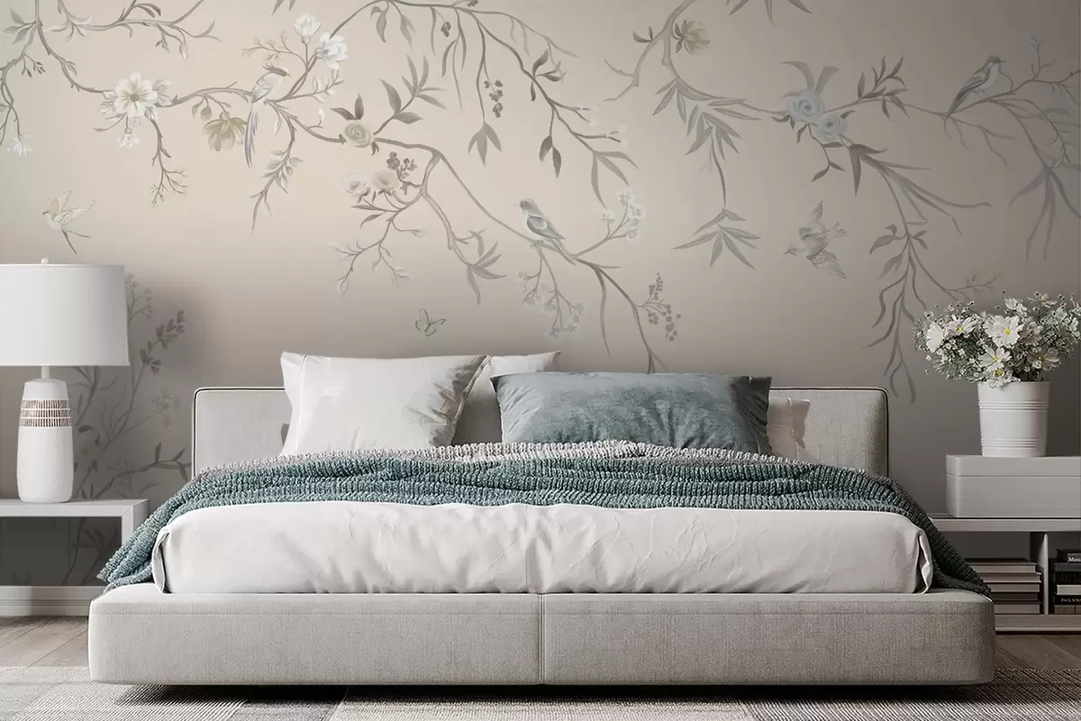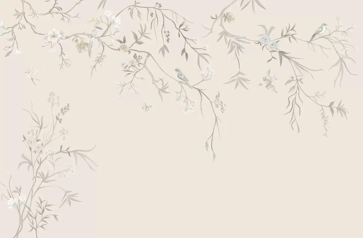 Fototapet Ramuri florale cu păsări pe un fundal deschis Nr. w05127v7