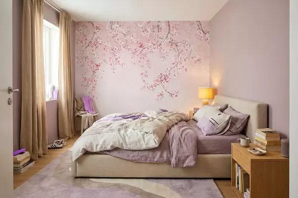 Fototapet Ramuri cu flori roz pe un fundal pastelat delicat Nr. w05129v1