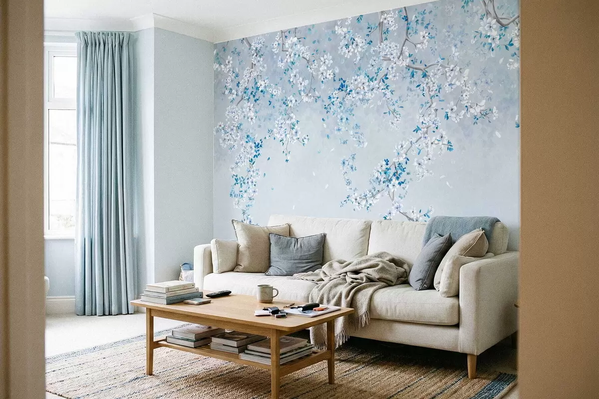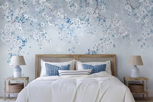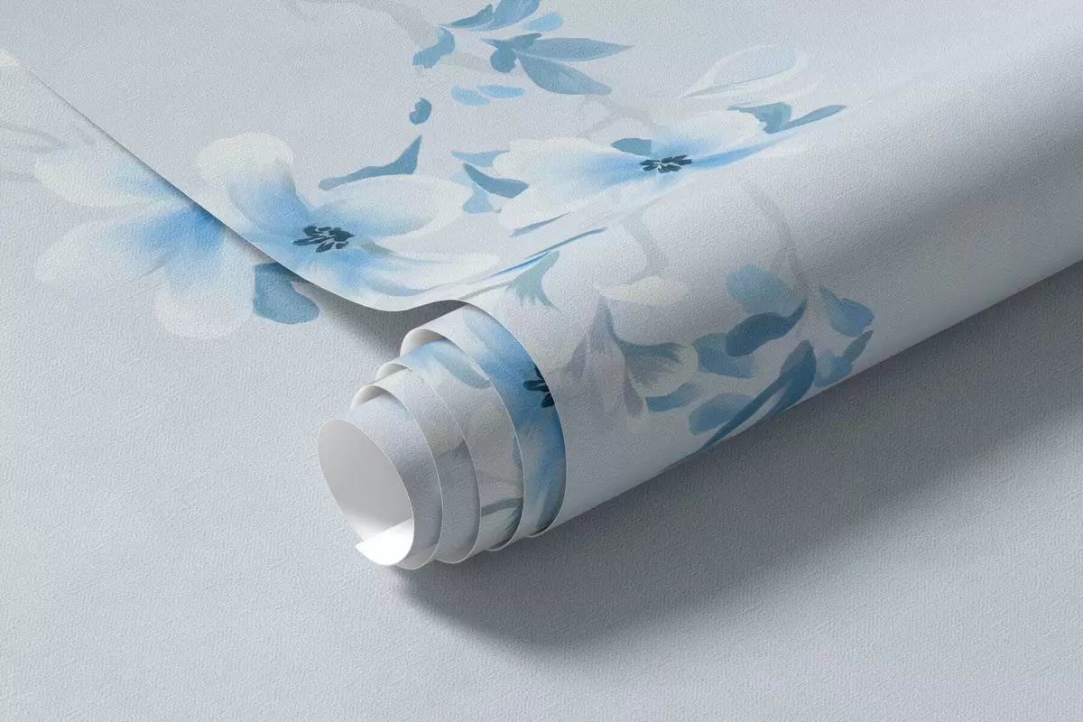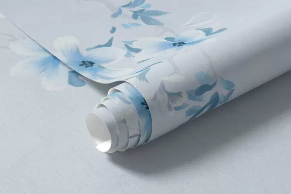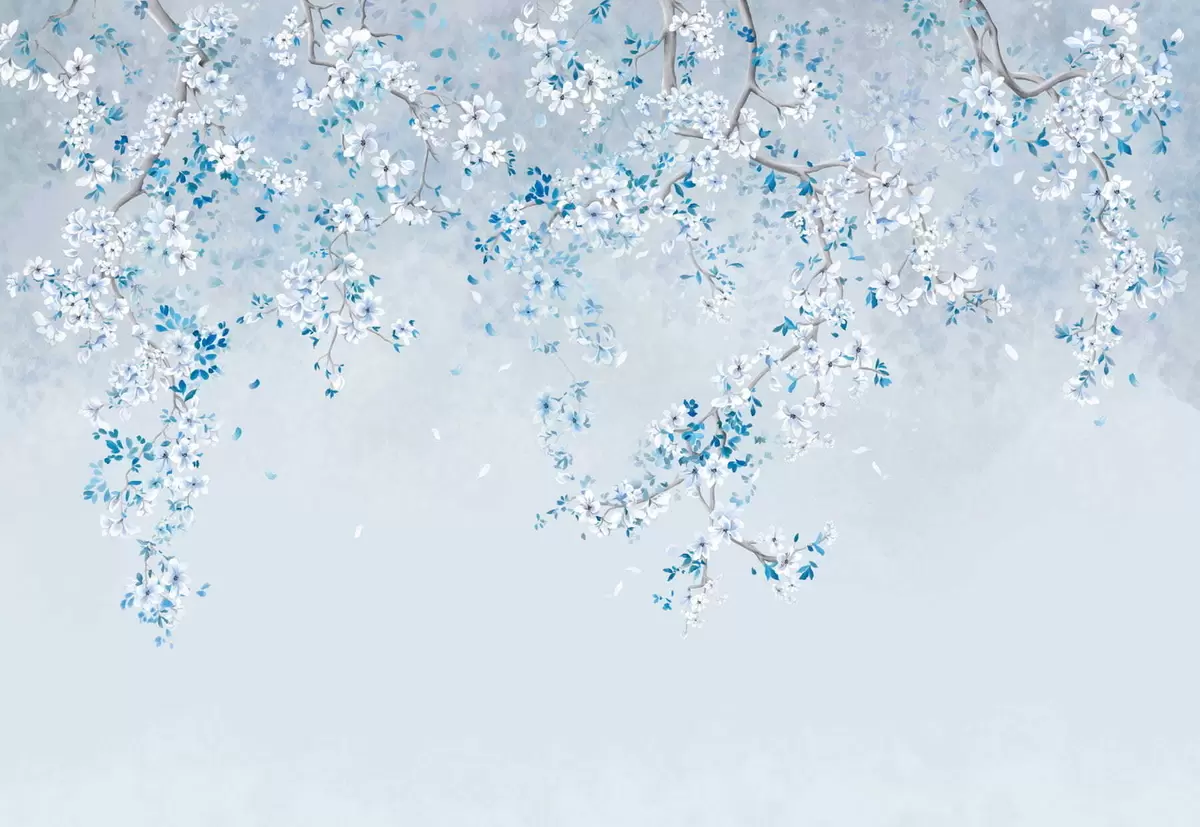 Fototapet Ramuri cu flori albe și albastre pe un fundal rece Nr. w05129v2