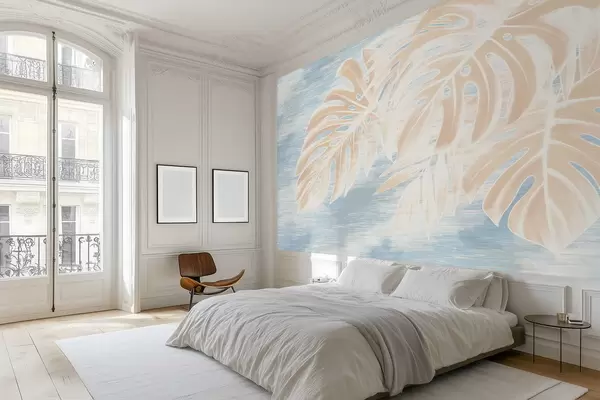 Fototapet Frunze abstracte în tonuri calde de bej pe un fundal deschis Nr. w05130