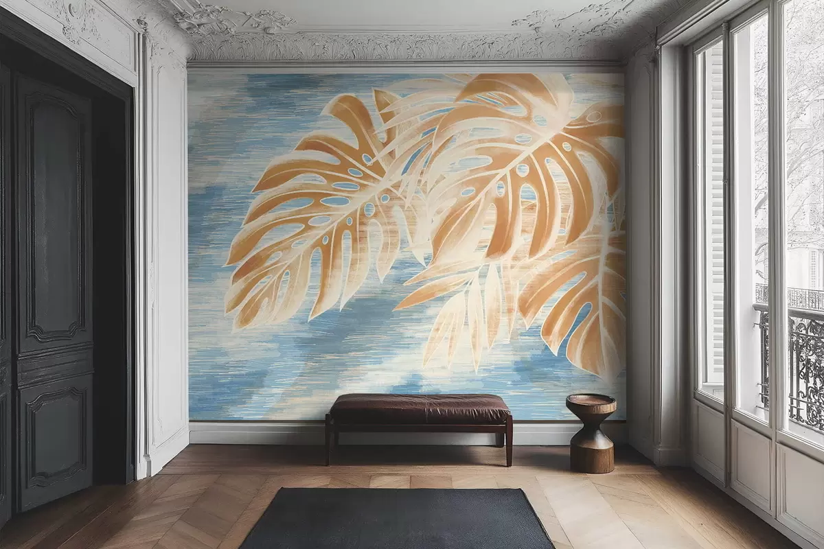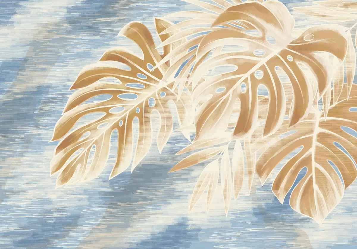 Fototapet Frunze în nuanțe deschise de nisip pe fond albastru Nr. w05130v1