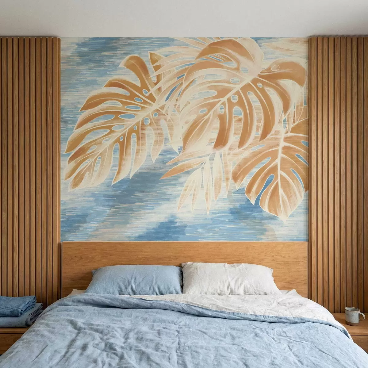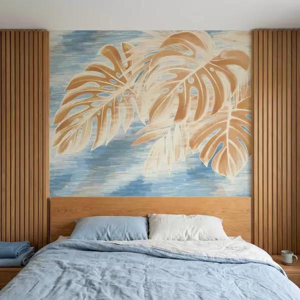 Fototapet Frunze în nuanțe deschise de nisip pe fond albastru Nr. w05130v1