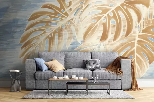 Fototapet Frunze în nuanțe deschise de nisip pe fond albastru Nr. w05130v1