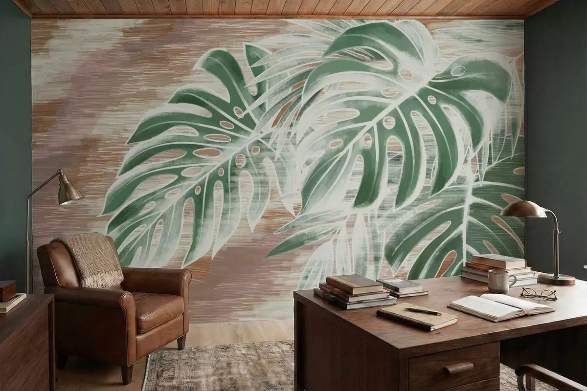 Fototapet Frunze verzi pe un fundal abstract cu textură caldă Nr. w05130v3