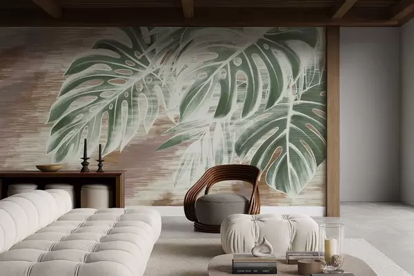 Fototapet Frunze verzi pe un fundal abstract cu textură caldă Nr. w05130v3