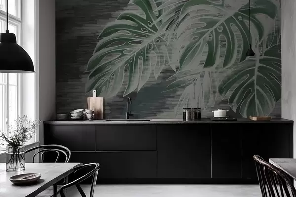Fototapet Frunze verde închis pe un fundal texturat de culoare închisă Nr. w05130v4