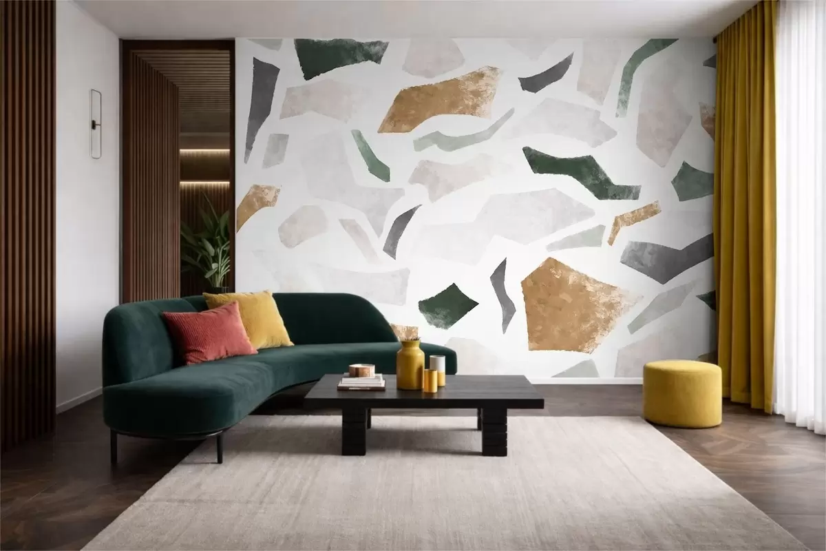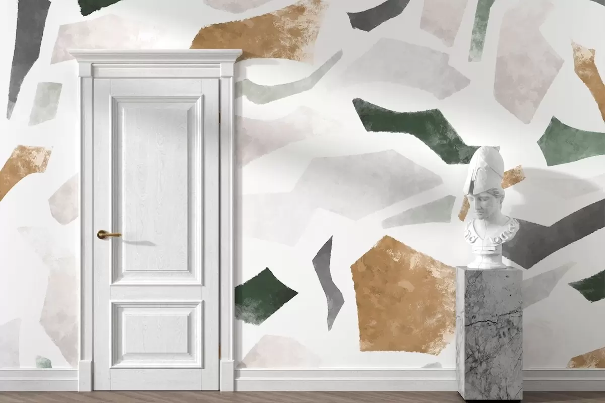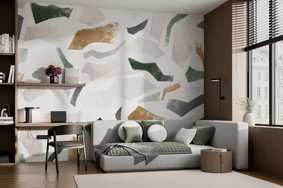 Fototapet Fragmente abstracte cu textură, în nuanțe de verde și bej Nr. w05146