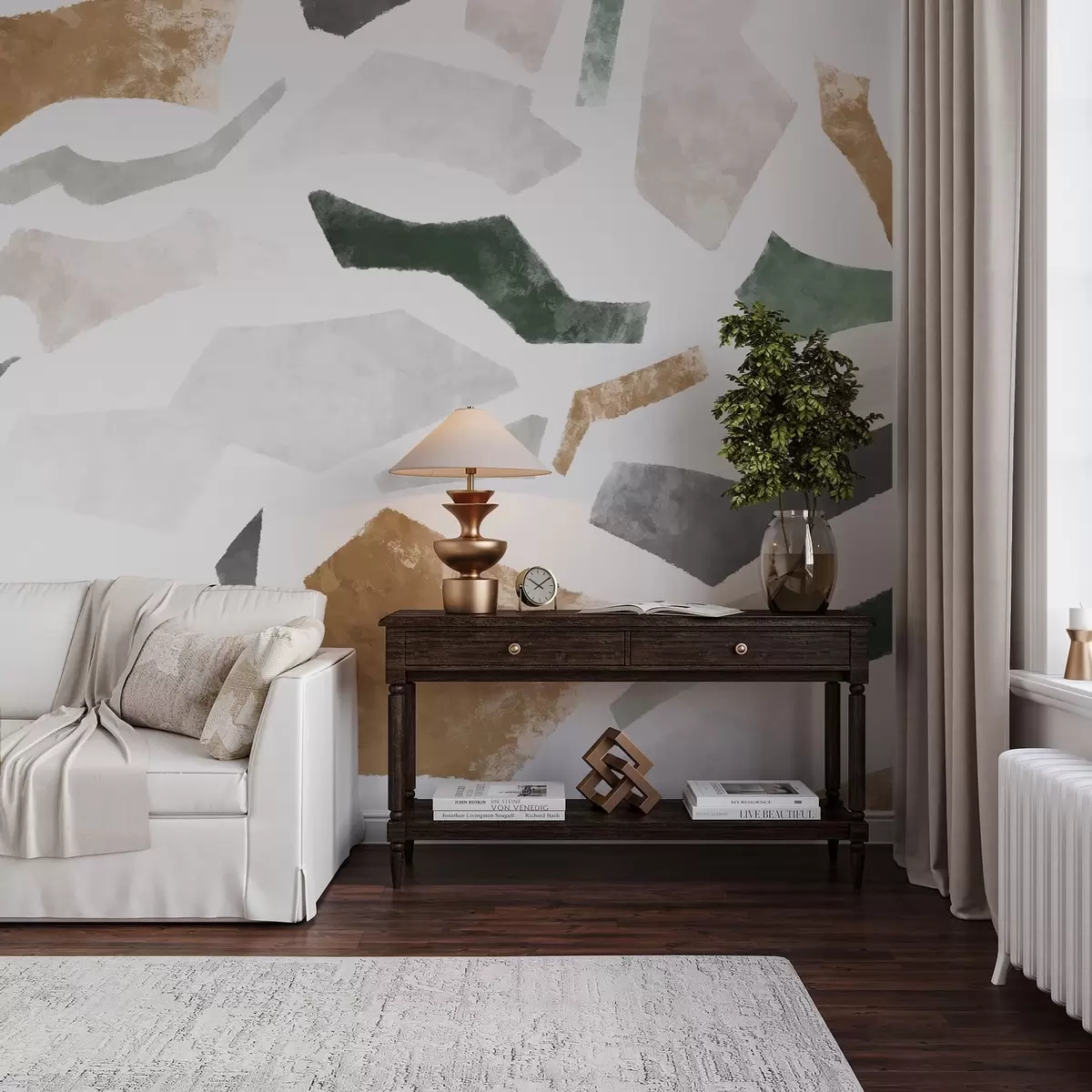 Fototapet Fragmente abstracte cu textură, în nuanțe de verde și bej Nr. w05146