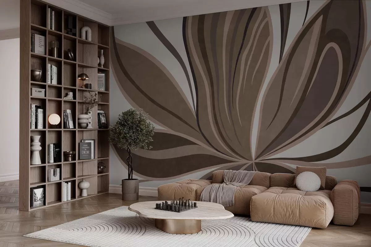 Fototapet Floare stilizată cu linii fluide în nuanțe de maro Nr. w05147