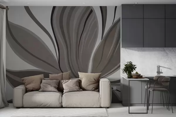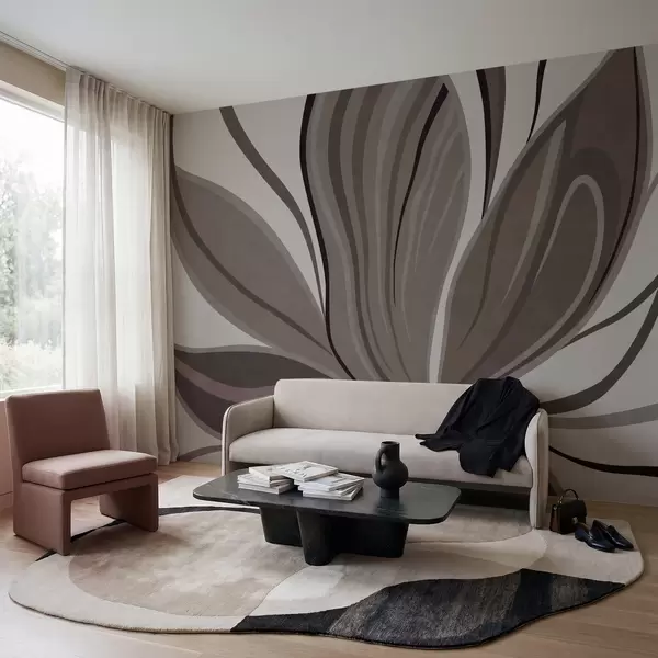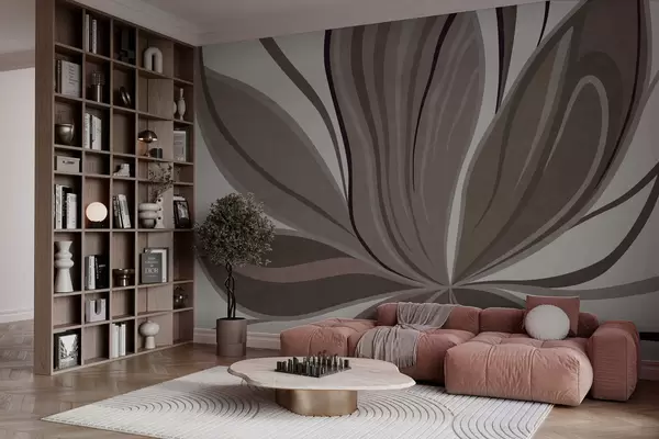 Fototapet Floare abstractă cu linii delicate, în nuanțe de gri-bej Nr. w05147v1