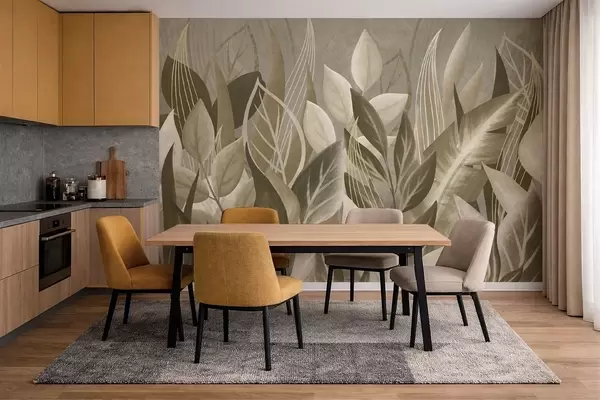 Fototapet Frunze abstracte în nuanțe de bej și verde Nr. w05148