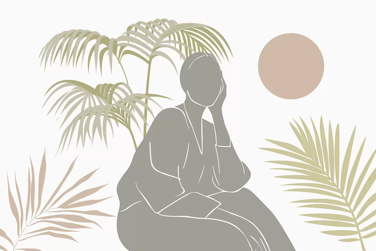 Fototapet Silueta unei femei și frunze de palmier Nr. w05190