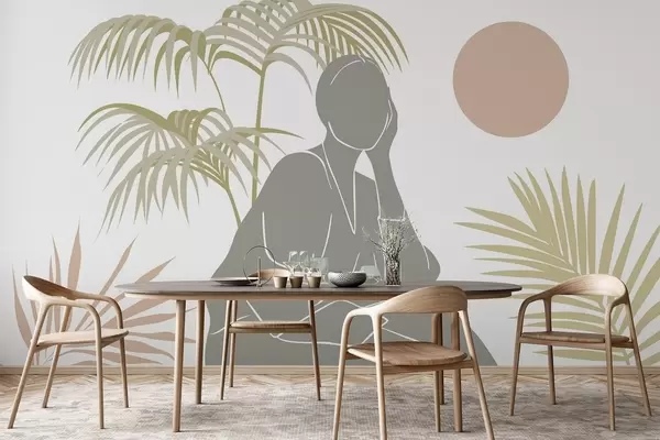 Fototapet Silueta unei femei și frunze de palmier Nr. w05190