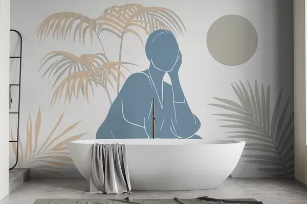 Fototapet Silueta unei femei și frunze de palmier Nr. w05190v1