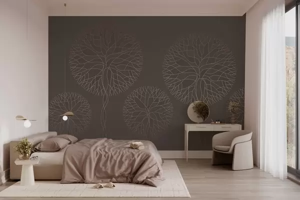 Fototapet Copaci liniari fantastici cu coroane luxuriante în nuanțe elegante de mocha Nr. w05213v1