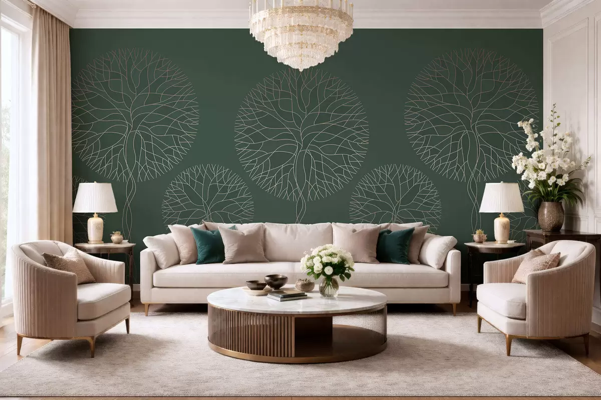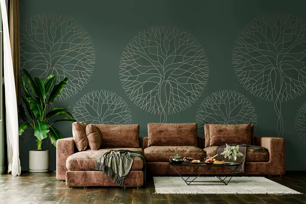 Fototapet Copaci liniari fantastici cu coroane luxuriante în nuanțe elegante de verde închis Nr. w05213v2