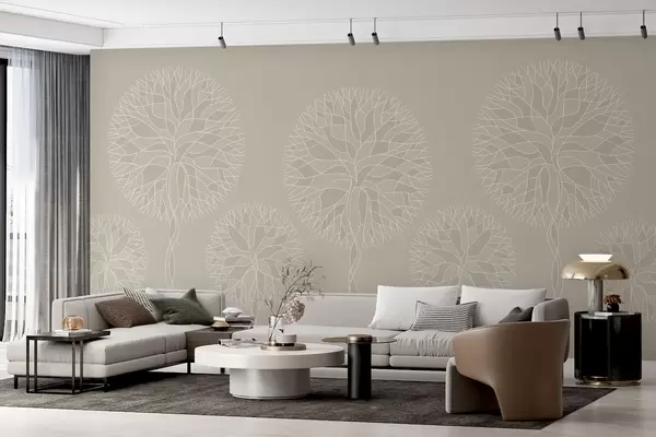 Fototapet Copaci liniari fantastici cu coroane luxuriante în nuanțe de bej Nr. w05213v3