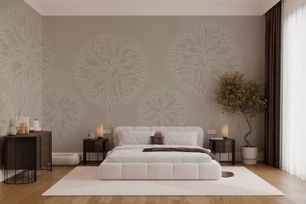 Fototapet Copaci liniari fantastici cu coroane luxuriante în nuanțe de bej Nr. w05213v3