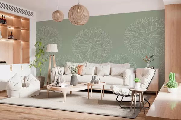 Fototapet Copaci liniari fantastici cu coroane luxuriante în nuanțe de verde deschis Nr. w05213v6