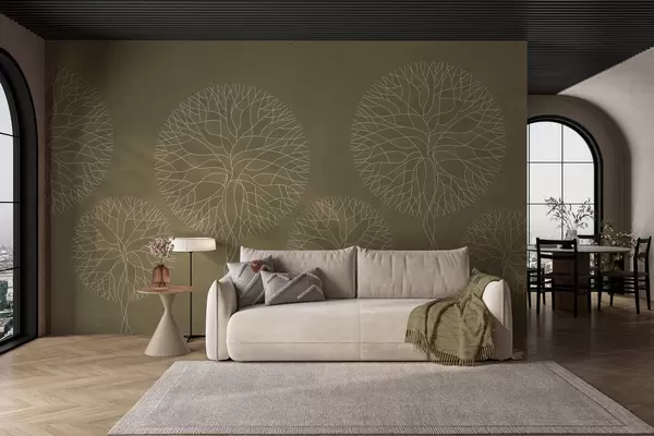 Fototapet Copaci liniari fantastici cu coroane luxuriante în nuanțe de kaki Nr. w05213v7