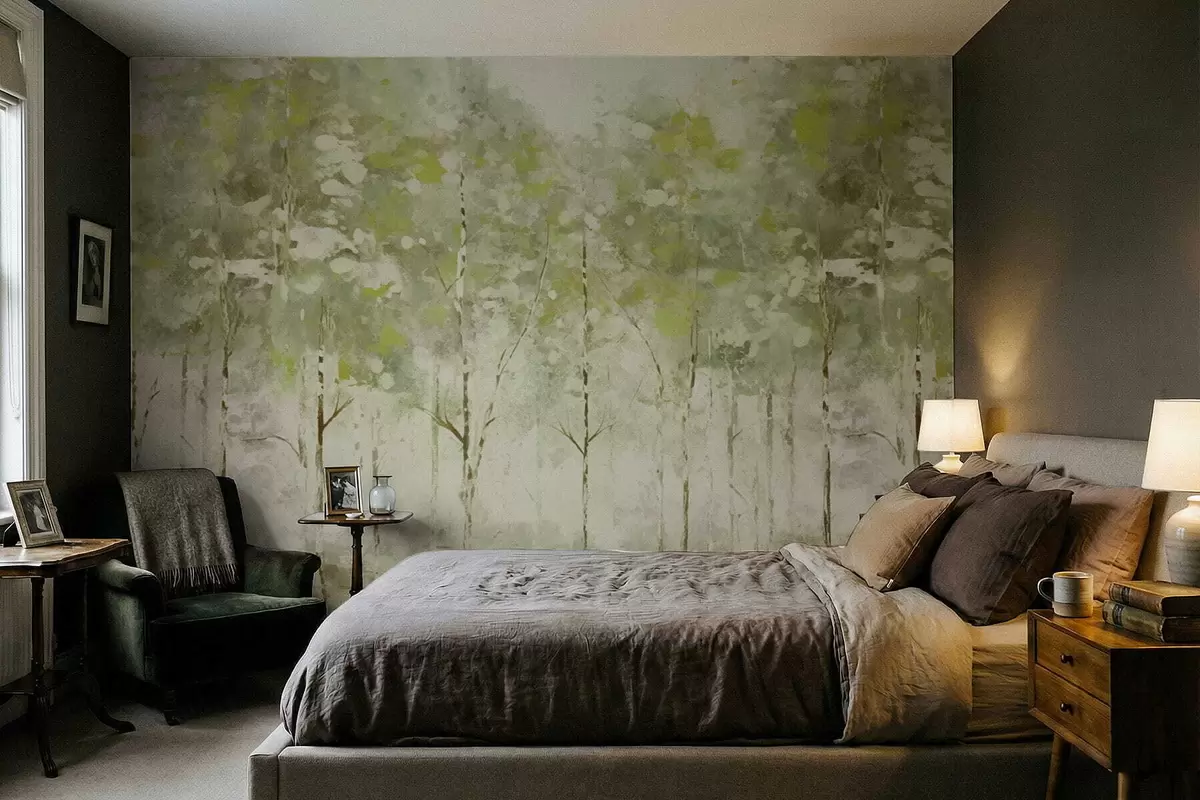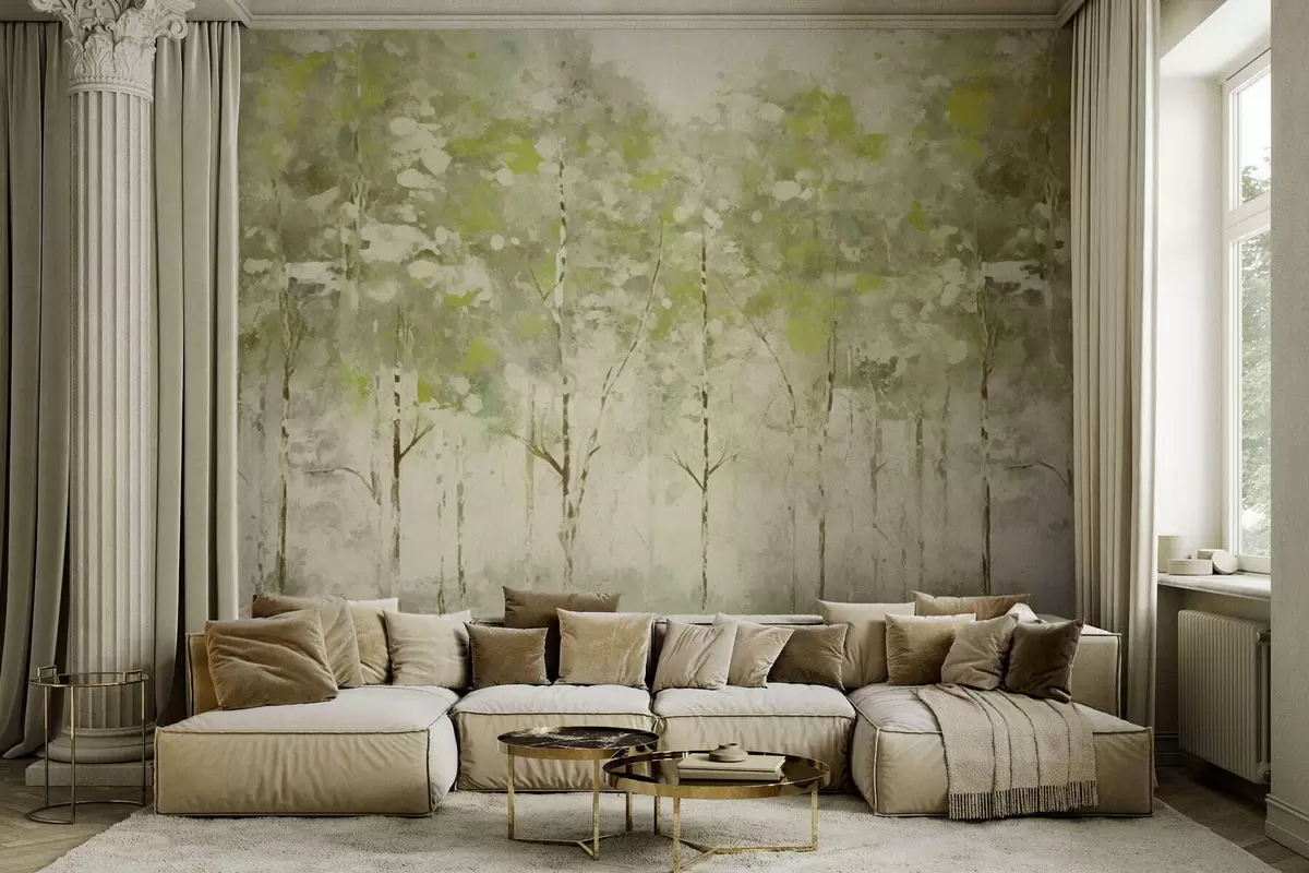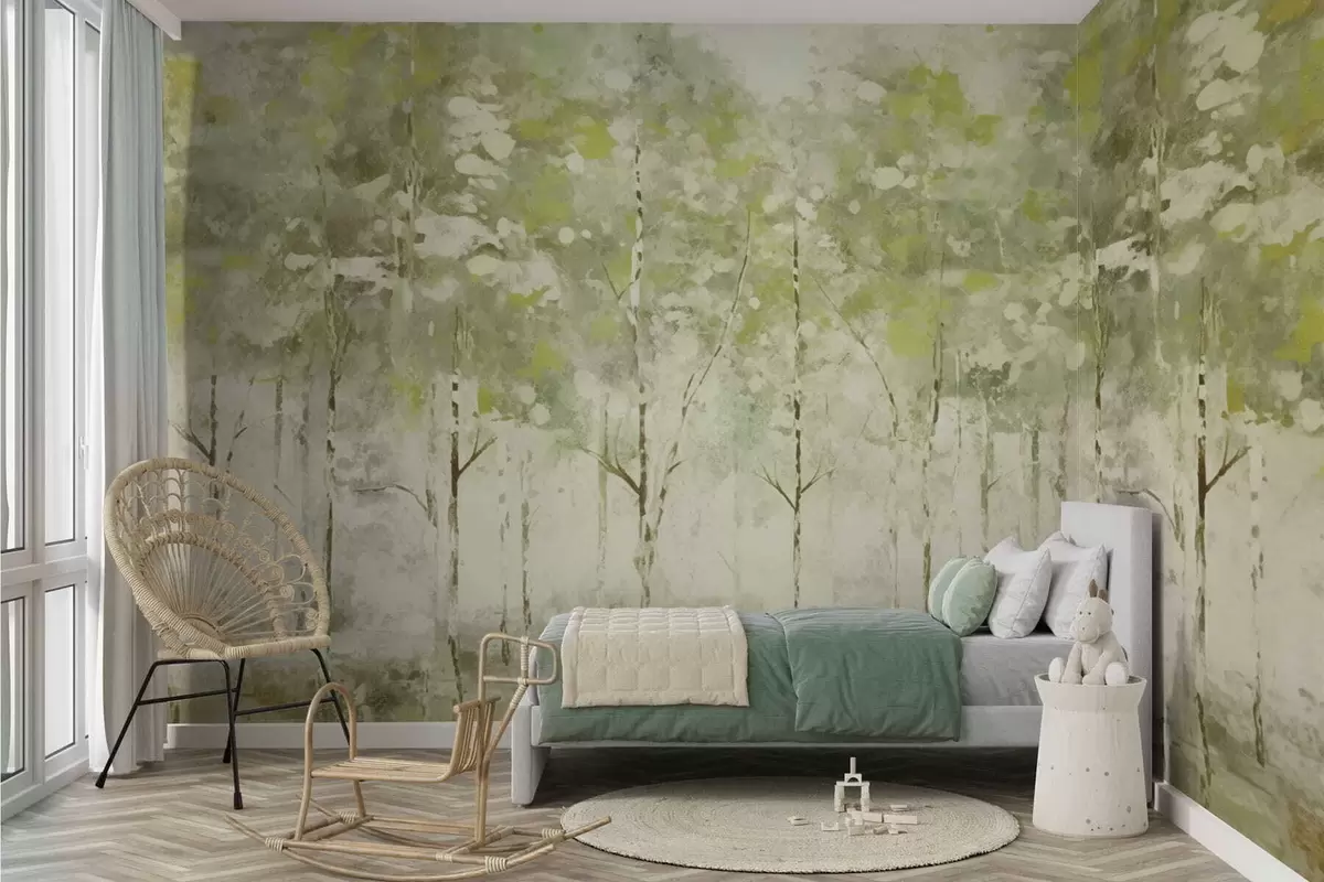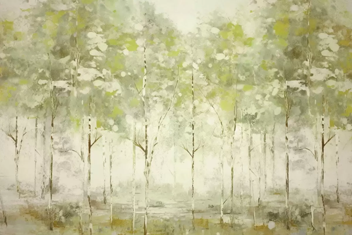 Fototapet Pădure stilizată cu copaci zvelți în nuanțe de verde Nr. w05221v1
