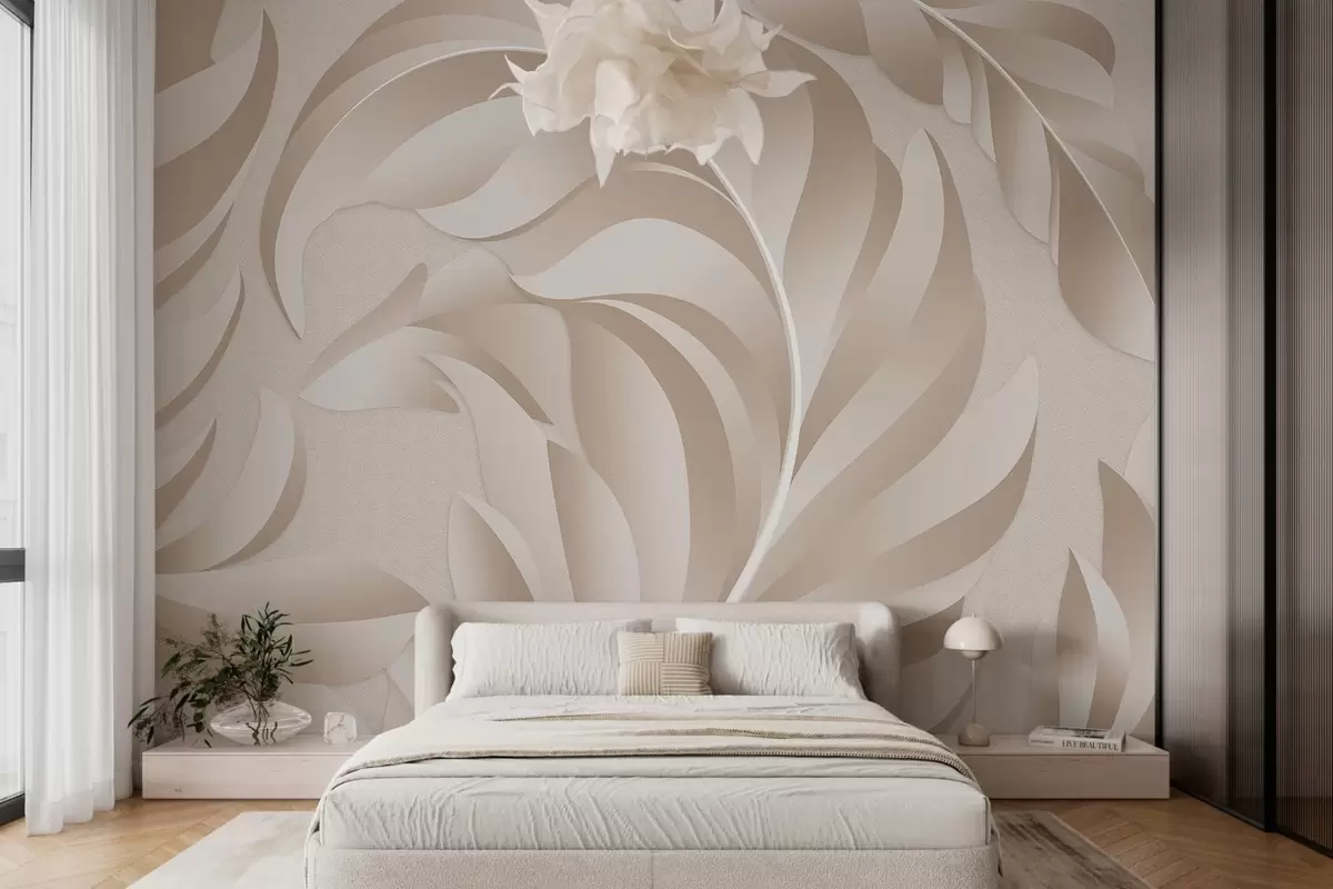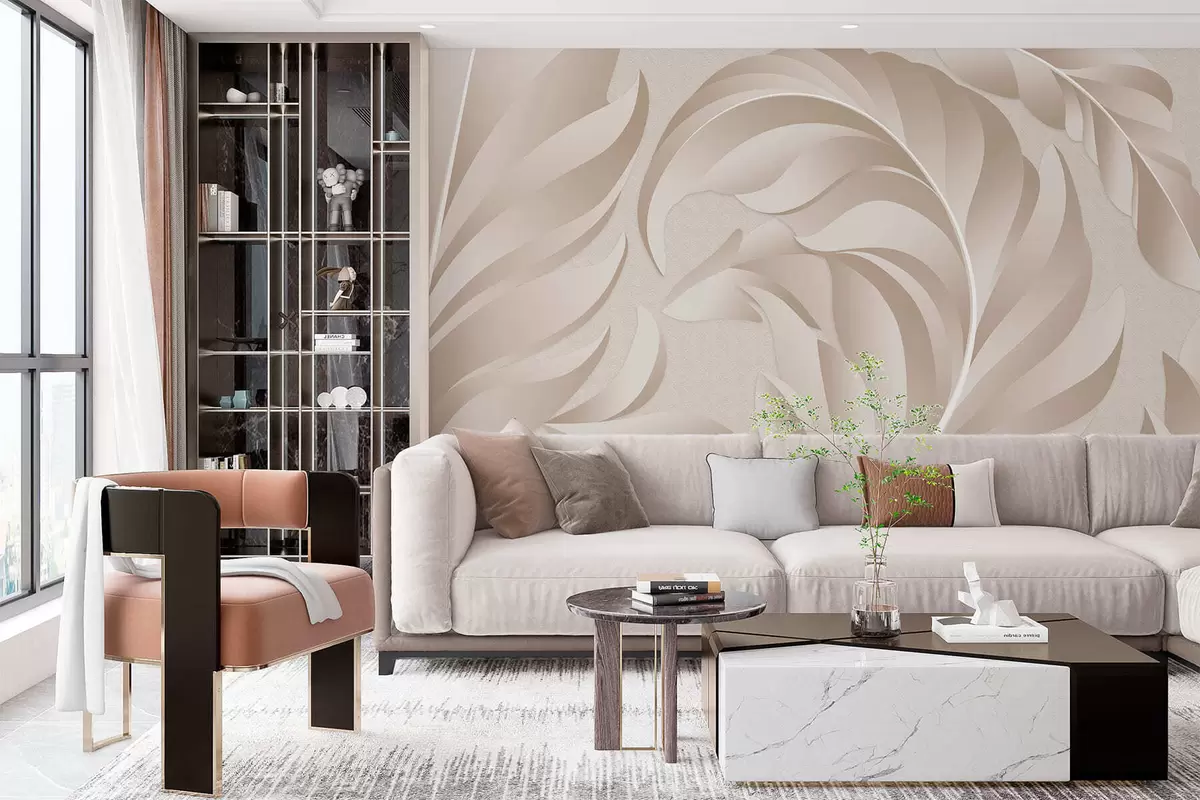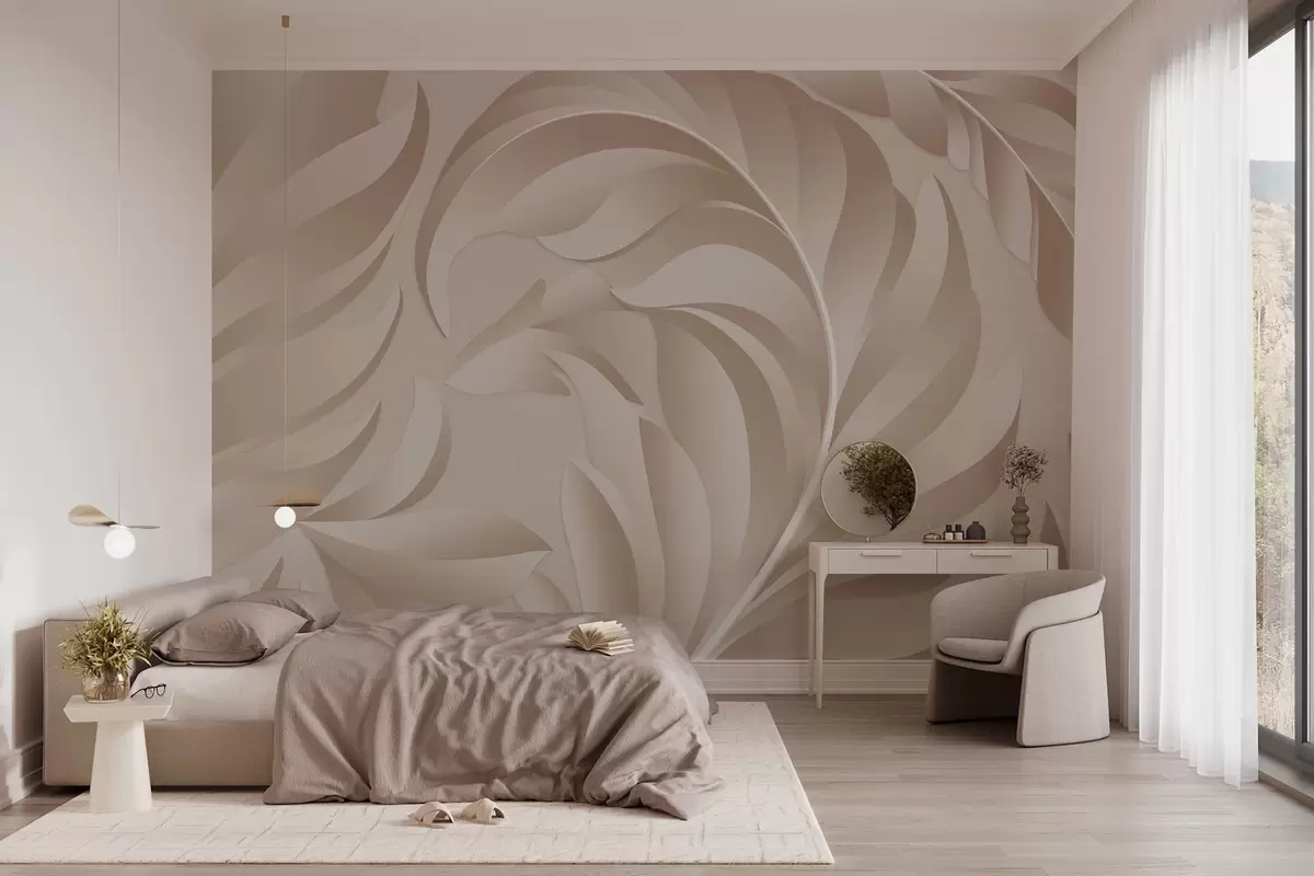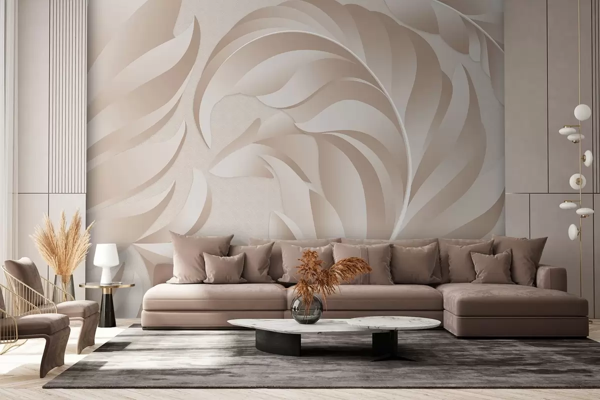Fototapet pene mari texturate în nuanțe de bej și pudră Nr. w05231