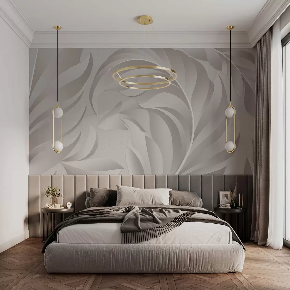 Fototapet pene mari texturate în nuanțe perlate Nr. w05231v2