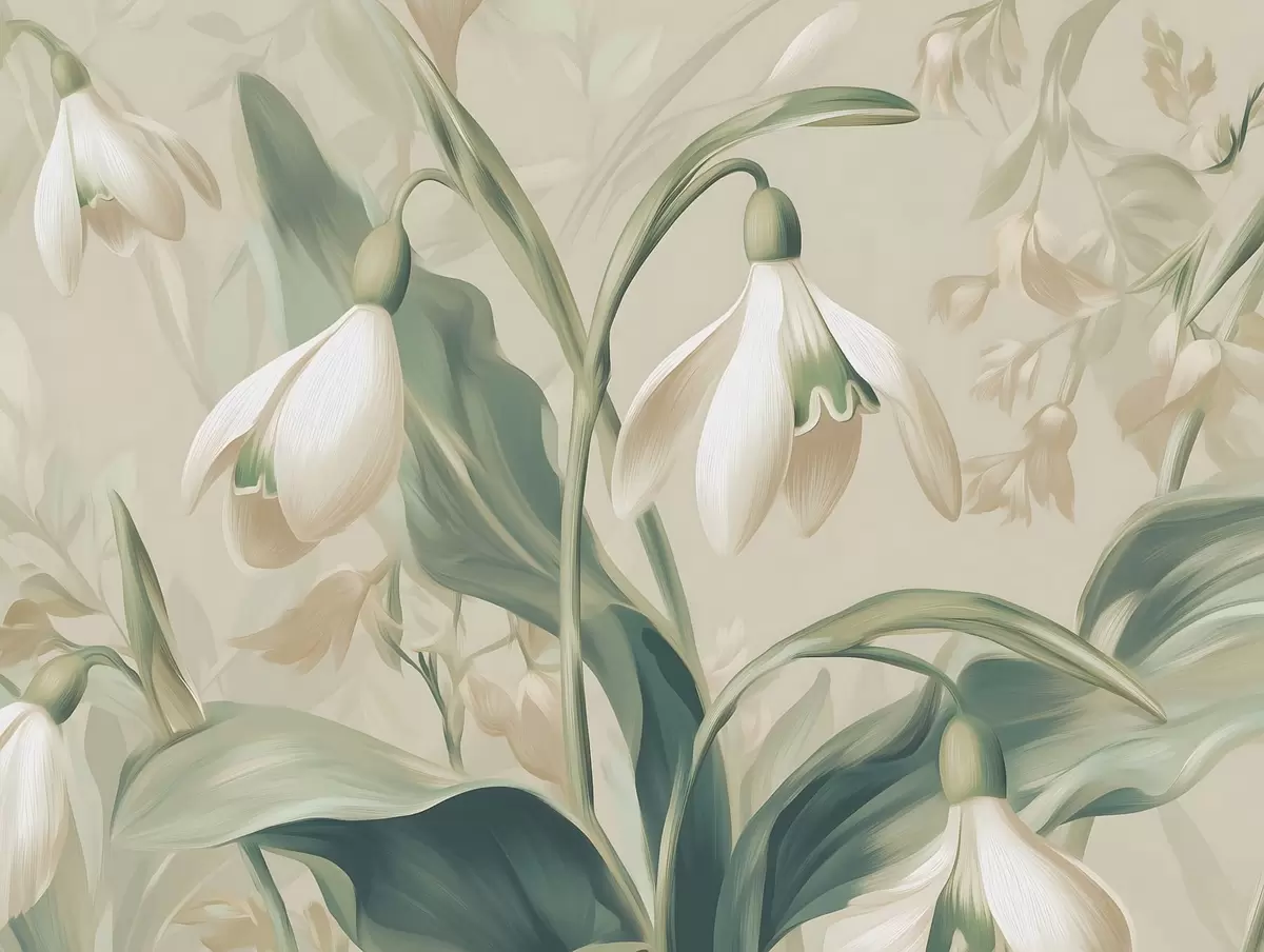 Fototapet ghiocele înflorite pe un fundal bej Nr. w05234