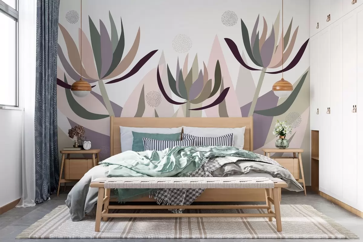 Fototapet flori de protea stilizate în stil primitiv Nr. w05236