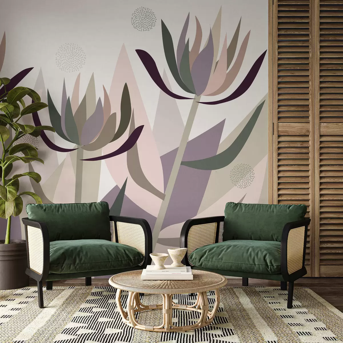 Fototapet flori de protea stilizate în stil primitiv Nr. w05236