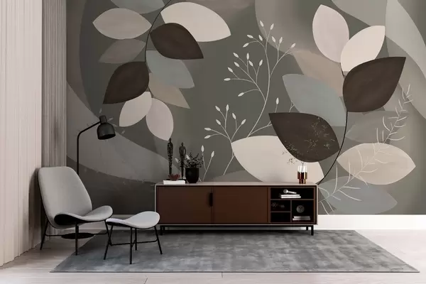 Fototapet frunze și iarbă în nuanțe închise Nr. w05237v1