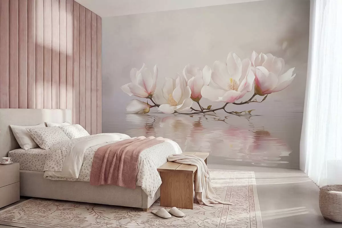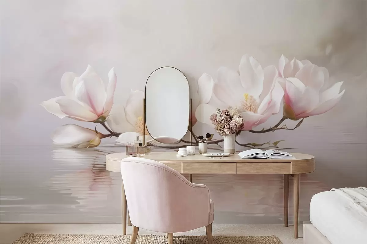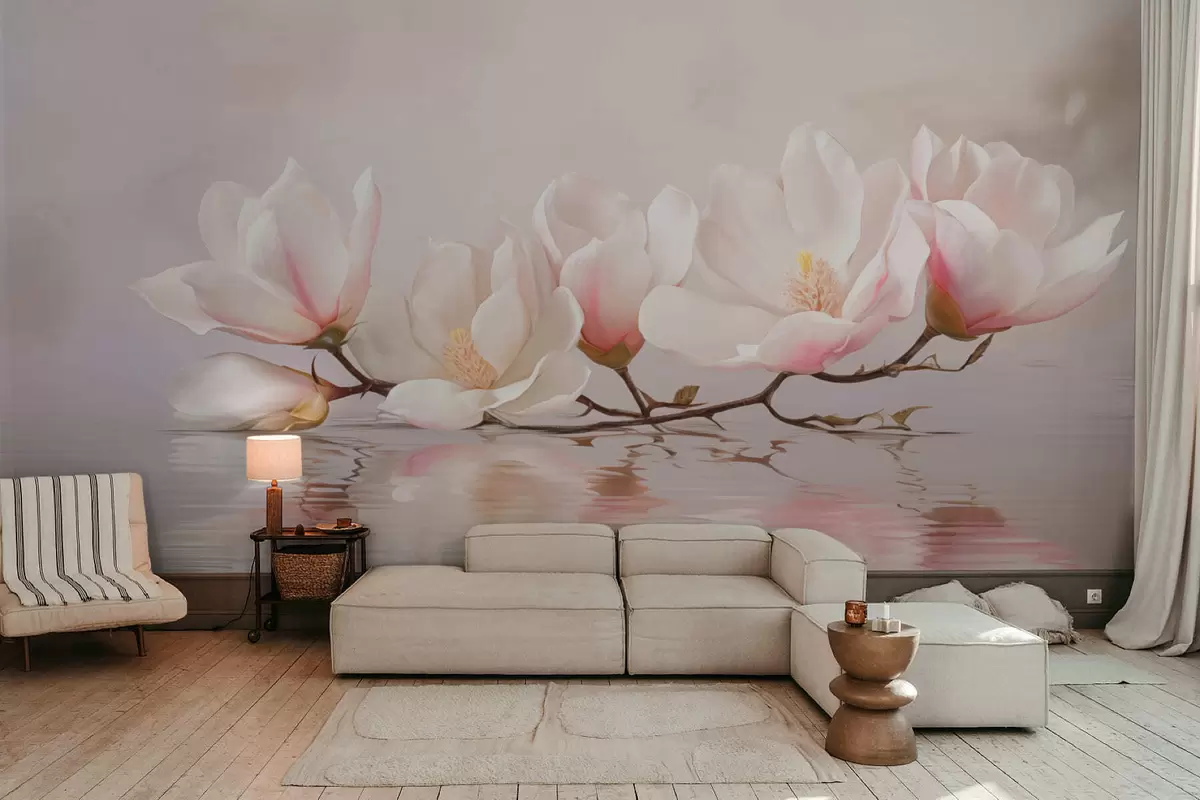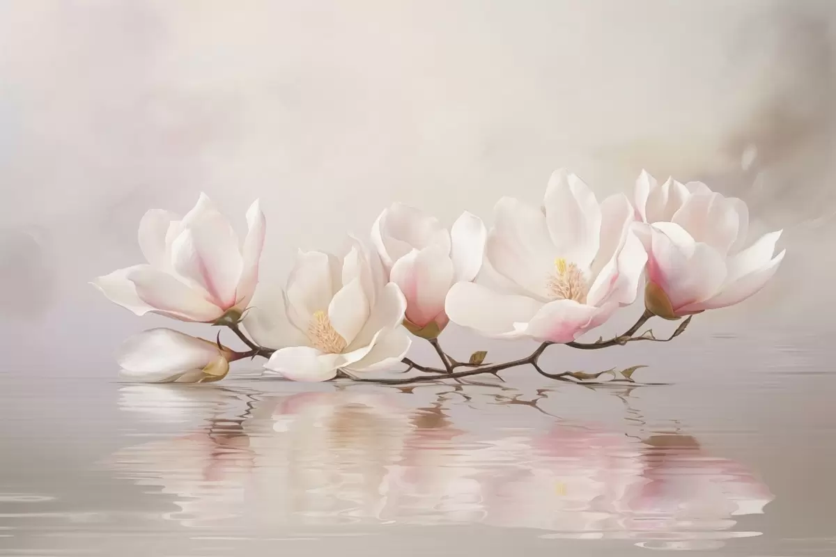 Fototapet Ramură de magnolie cu flori deasupra reflexiei apei liniștite Nr. w05353v1