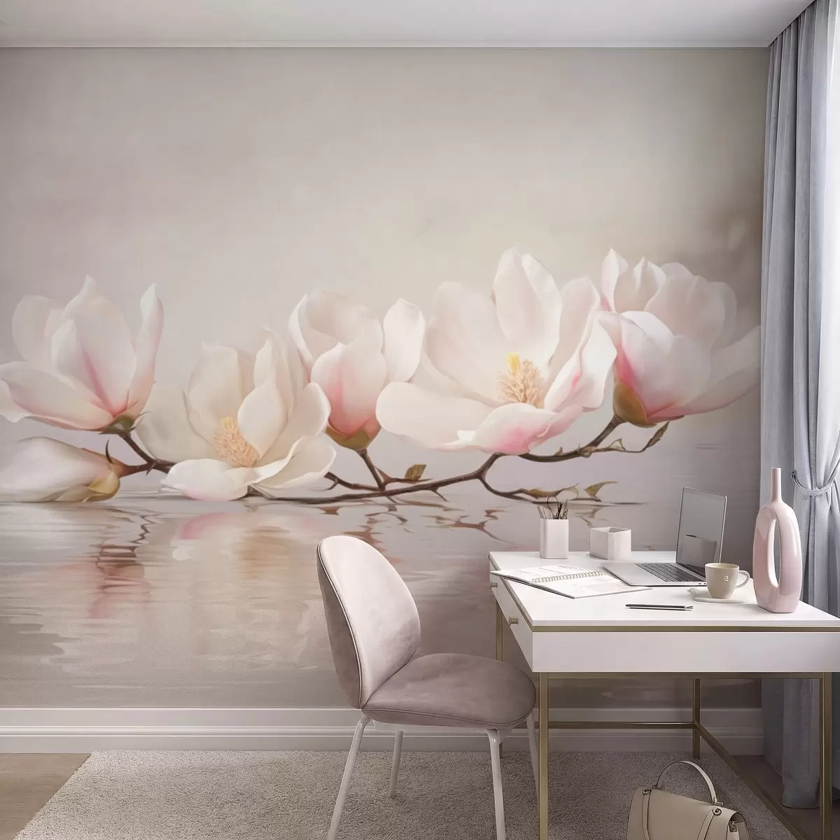 Fototapet Ramură de magnolie cu flori deasupra reflexiei apei liniștite Nr. w05353v1