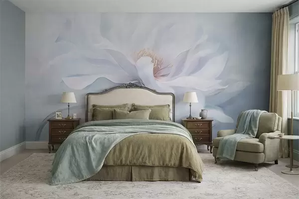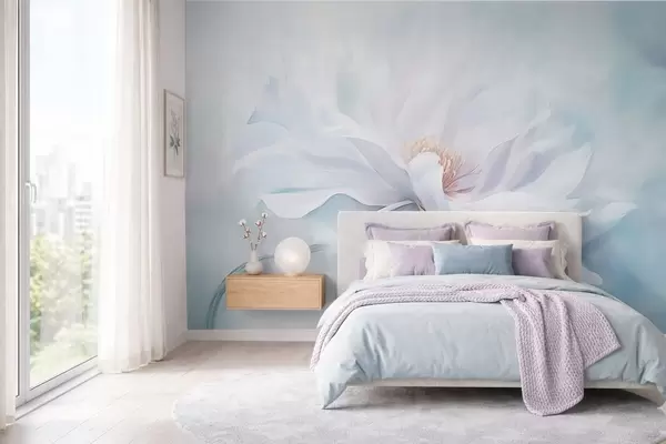 Fototapet Floare albă delicată cu petale fluide pe fundal albastru Nr. w05354