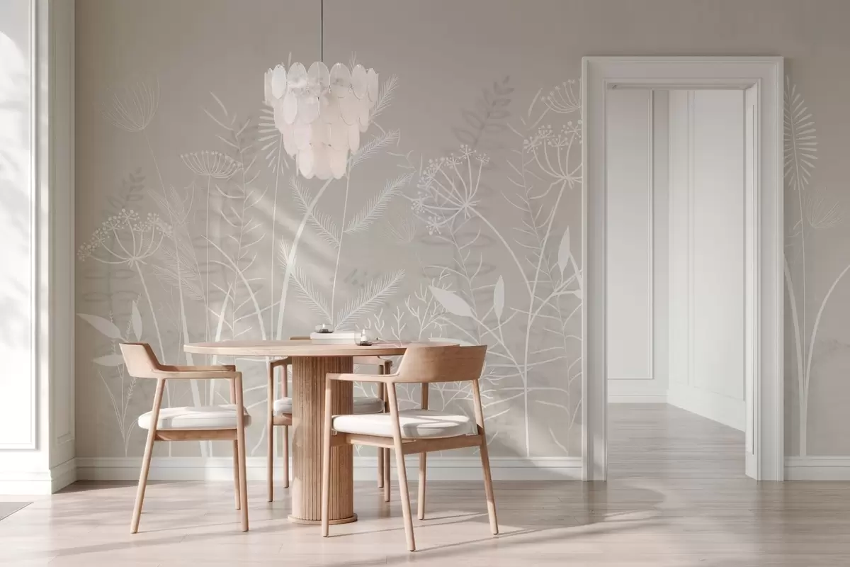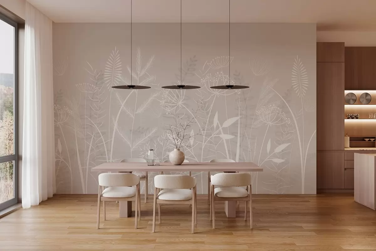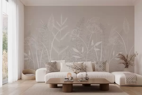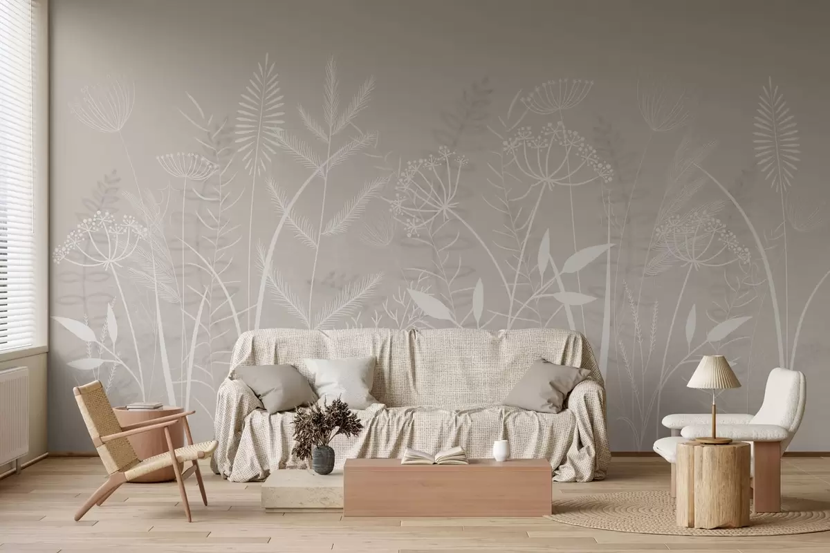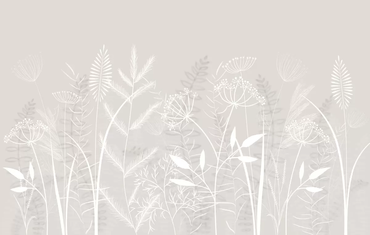 Fototapet ierburi sălbatice și flori delicate, pictate manual, pe un fundal bej Nr. w05383v1
