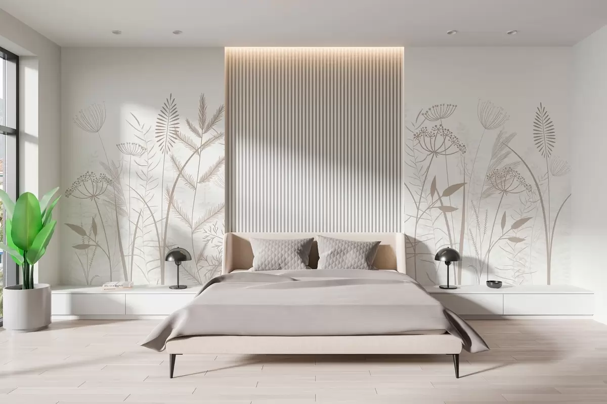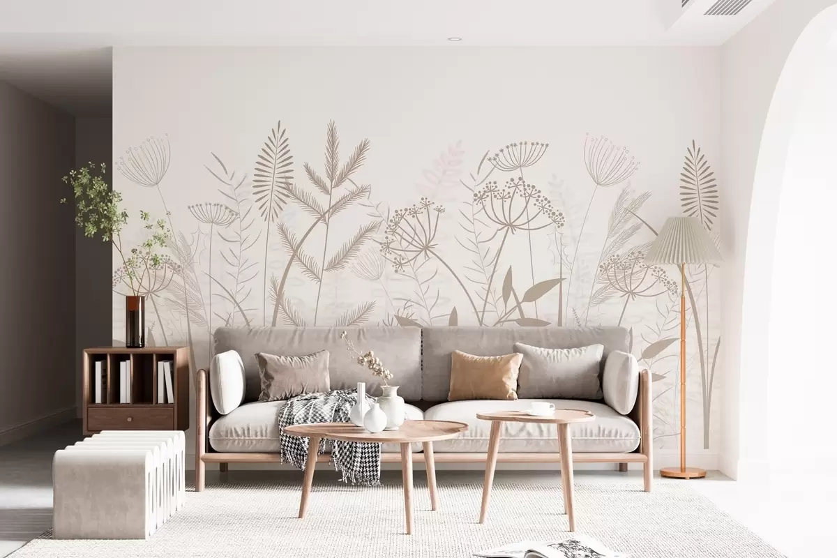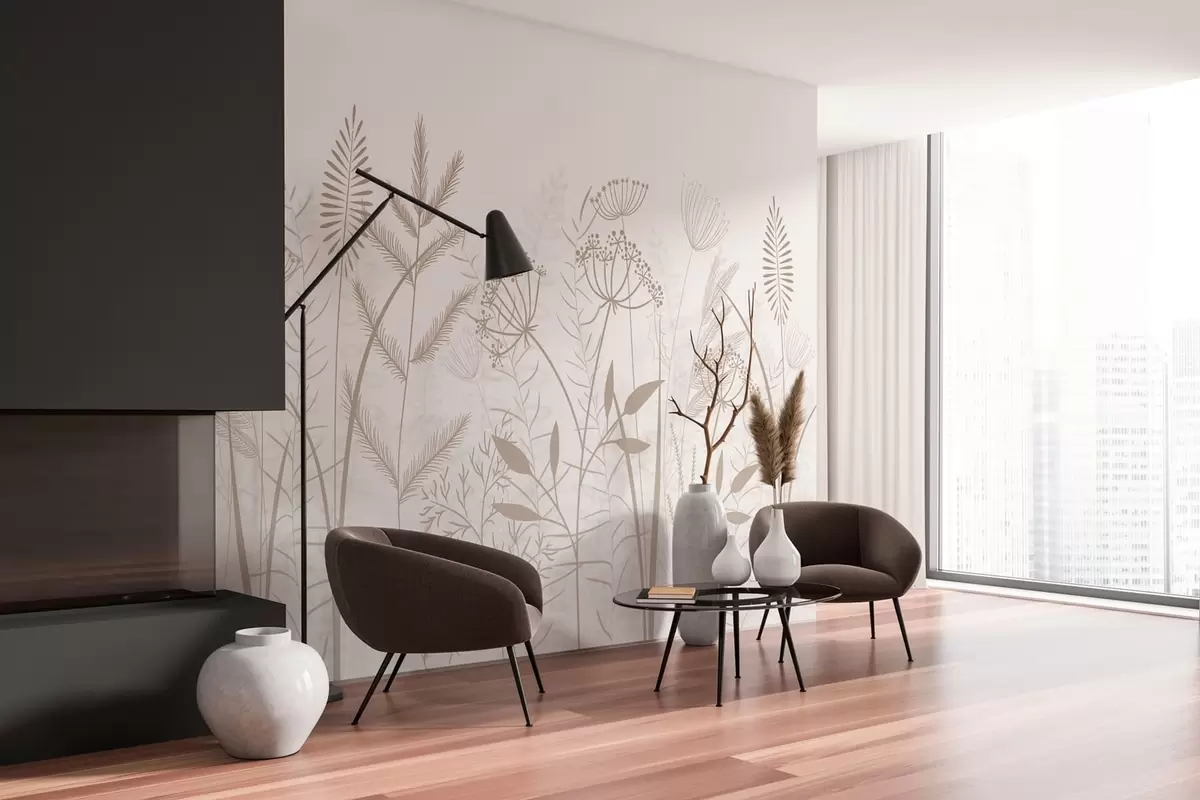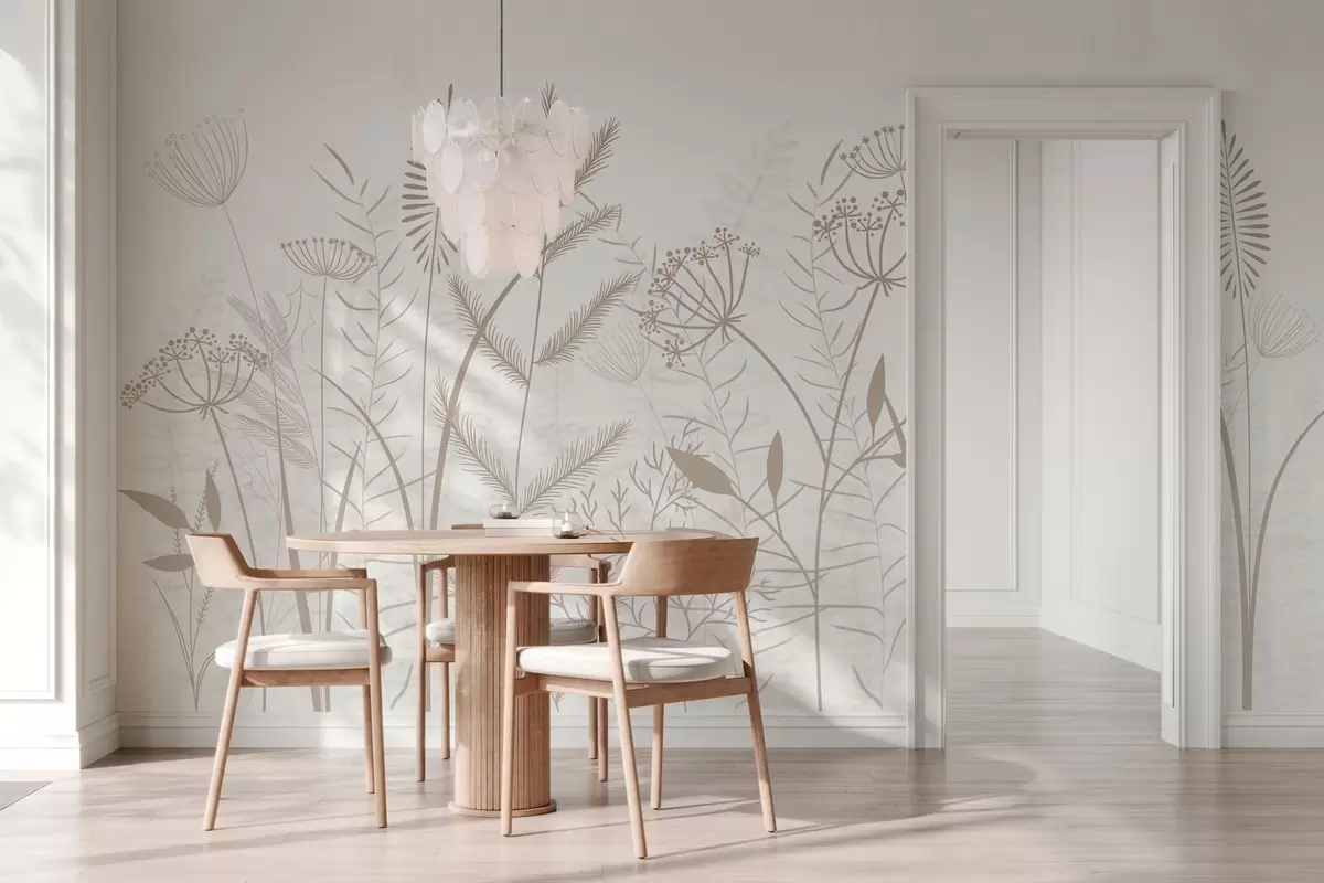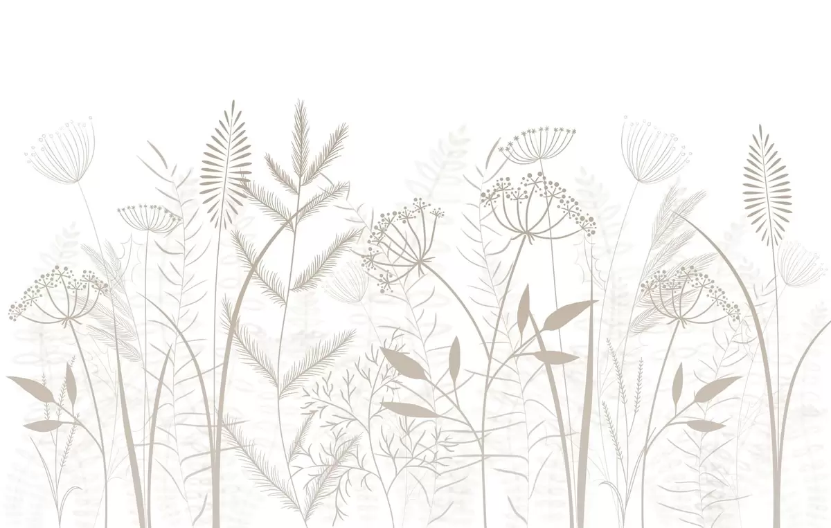 Fototapet ierburi sălbatice și flori delicate, pictate manual, pe un fundal alb Nr. w05383v2