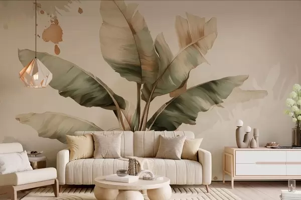Fototapet un buchet mare și pitoresc de frunze de bananier, cu pete în stil retro Nr. w05384