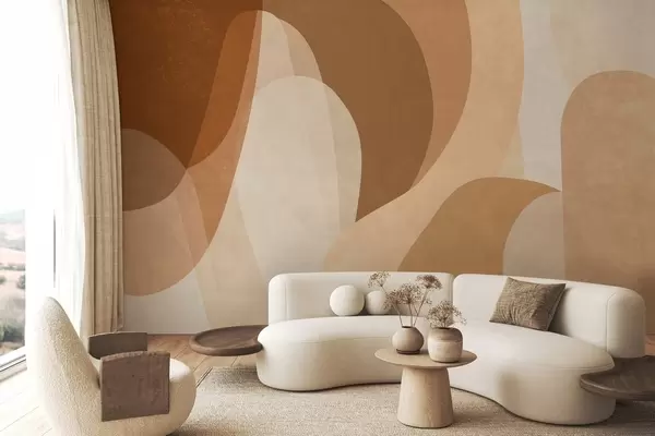 Fototapet curbe abstracte în nuanțe de maro, bej și castaniu Nr. w05387