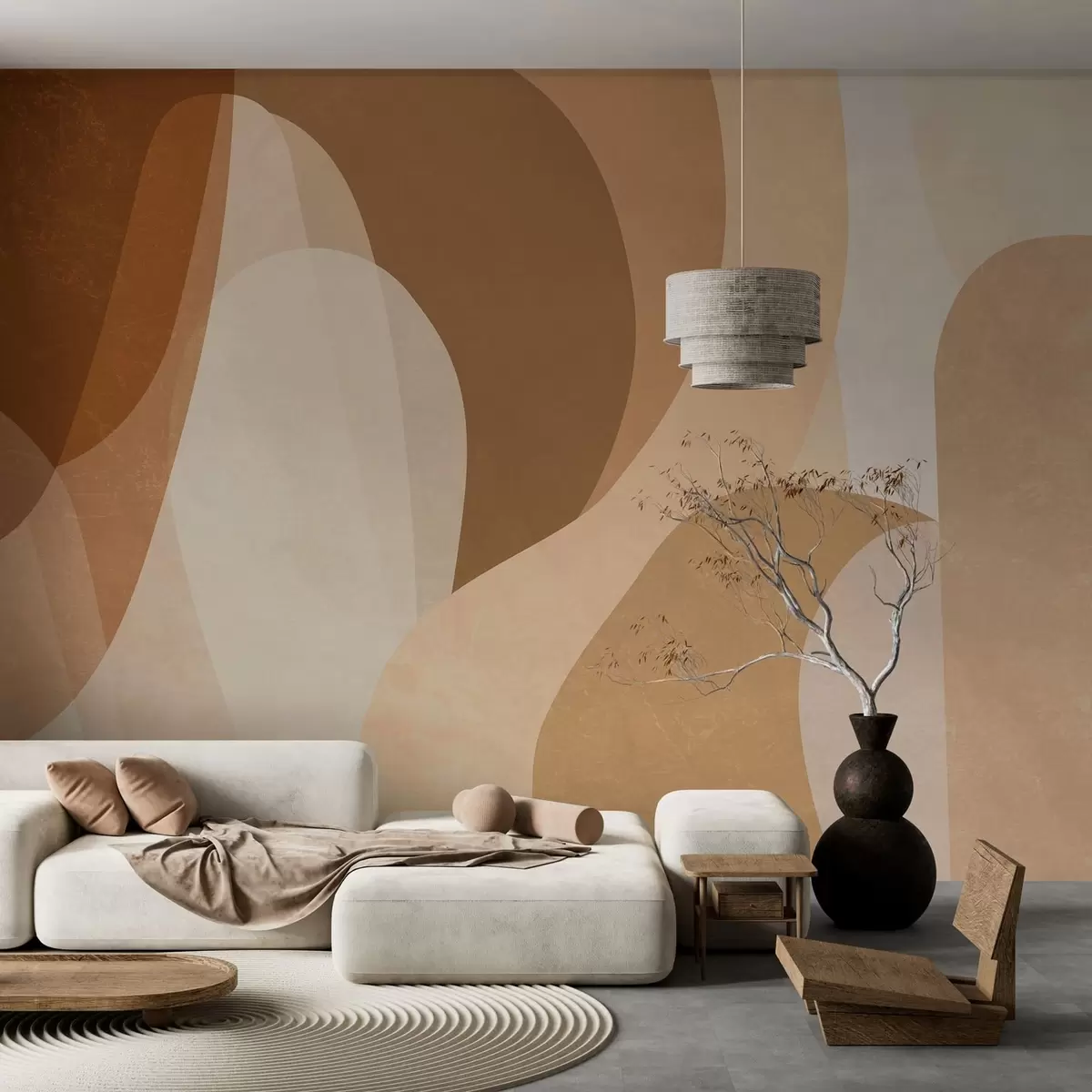 Fototapet curbe abstracte în nuanțe de maro, bej și castaniu Nr. w05387