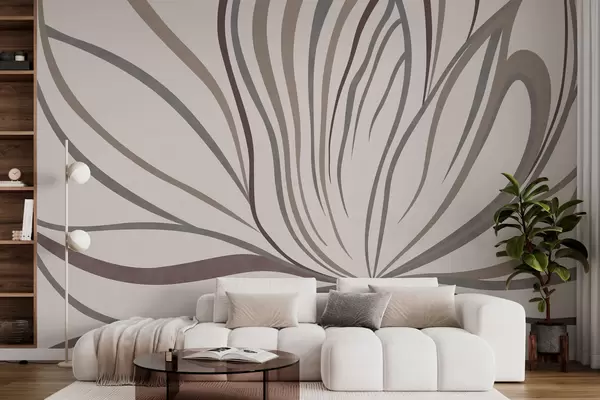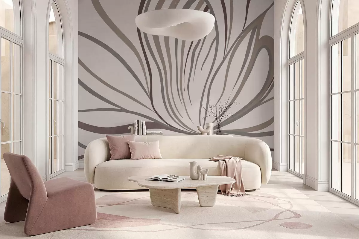 Fototapet Floare abstractă cu linii în nuanțe de gri și roz Nr. w05392