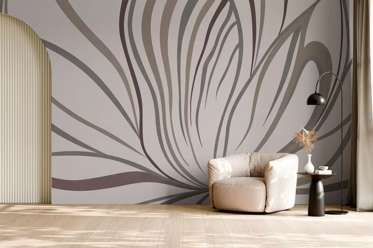 fototapet Floare abstractă cu linii în nuanțe de gri și roz w05392