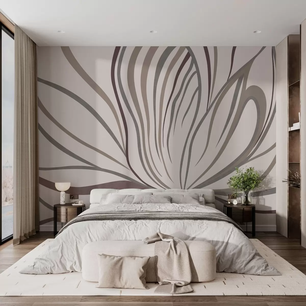 Fototapet Floare abstractă cu linii în nuanțe de gri și roz Nr. w05392