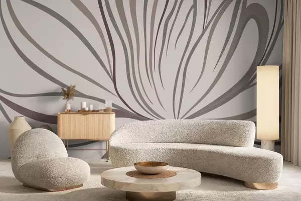 Fototapet Floare abstractă cu linii în nuanțe de gri și roz Nr. w05392