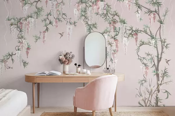 Fototapet Ramuri înflorite cu flori roz și păsări Nr. w05394v1