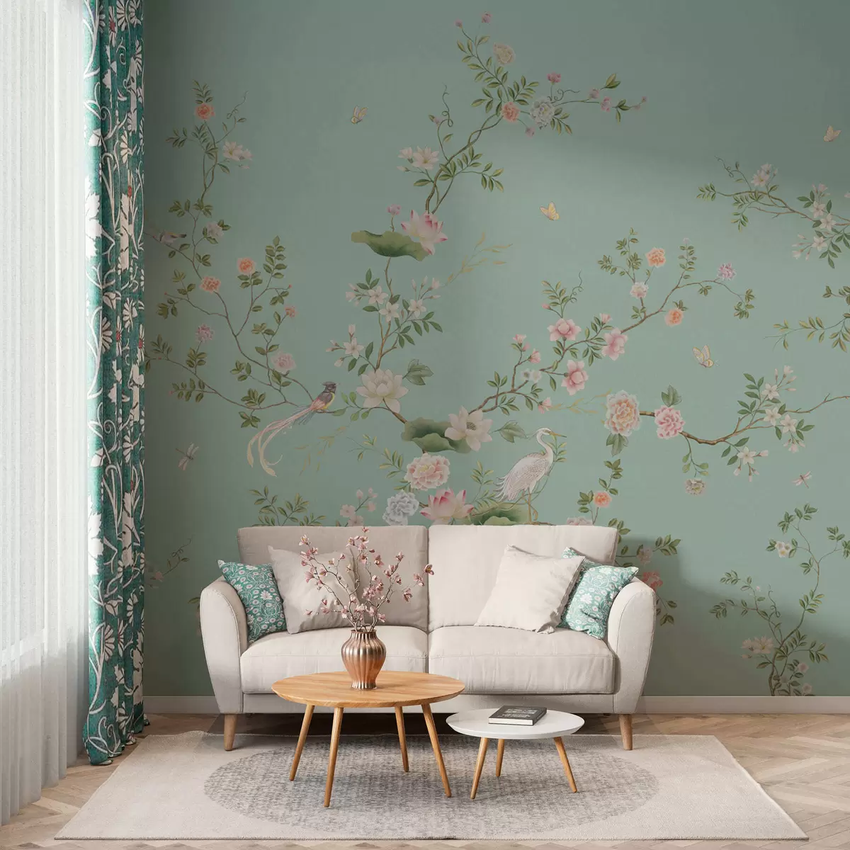 Fototapet Ramuri înflorite cu păsări pe fundal albastru Nr. w05416v1