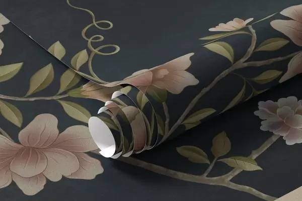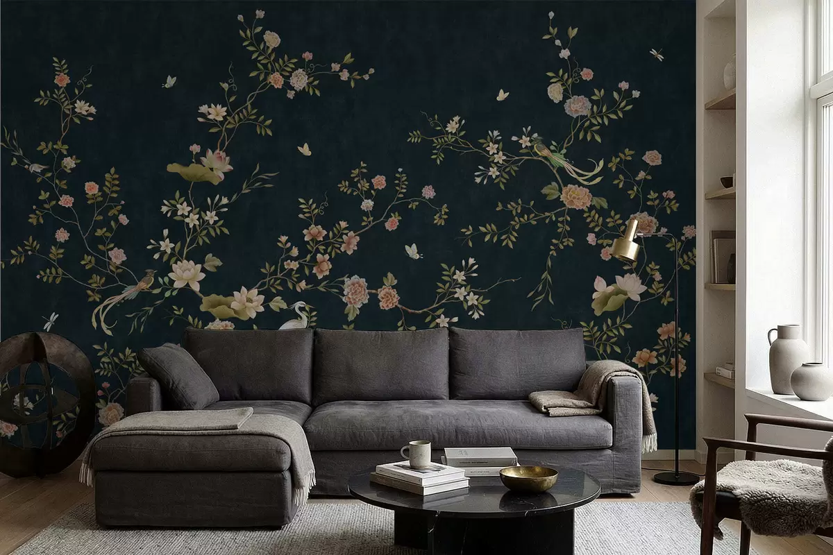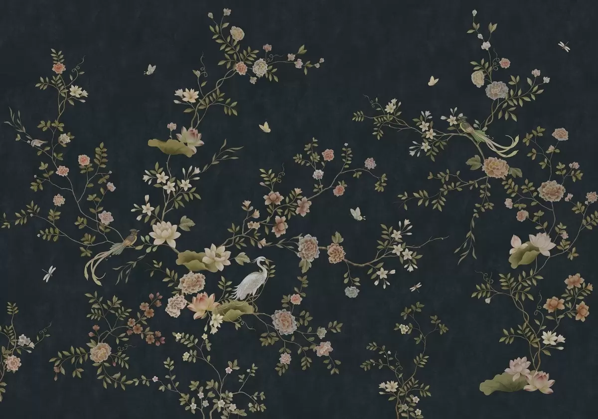 Fototapet Ramuri înflorite cu păsări pe fundal întunecat Nr. w05416v3
