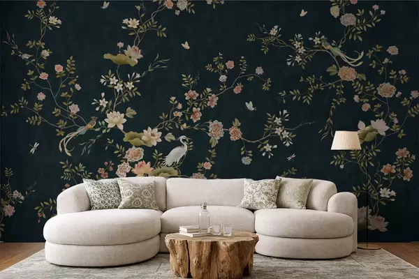 Fototapet Ramuri înflorite cu păsări pe fundal întunecat Nr. w05416v3
