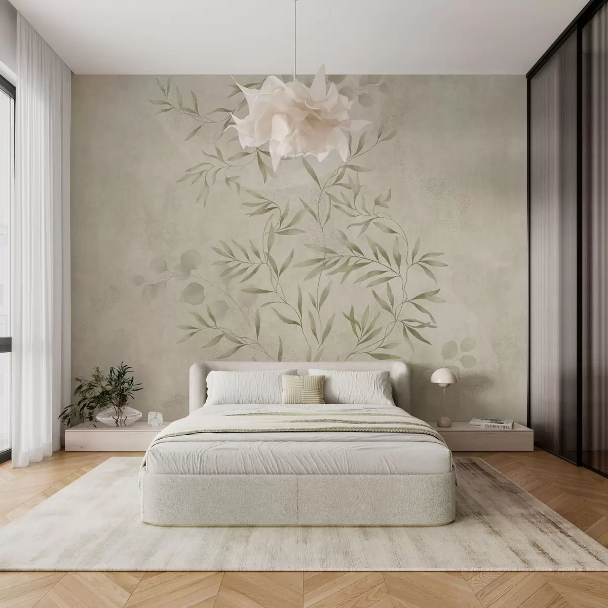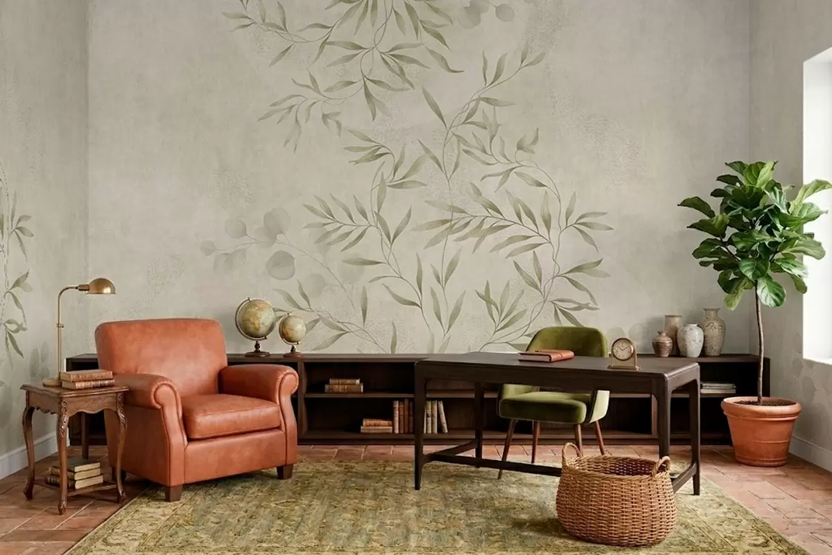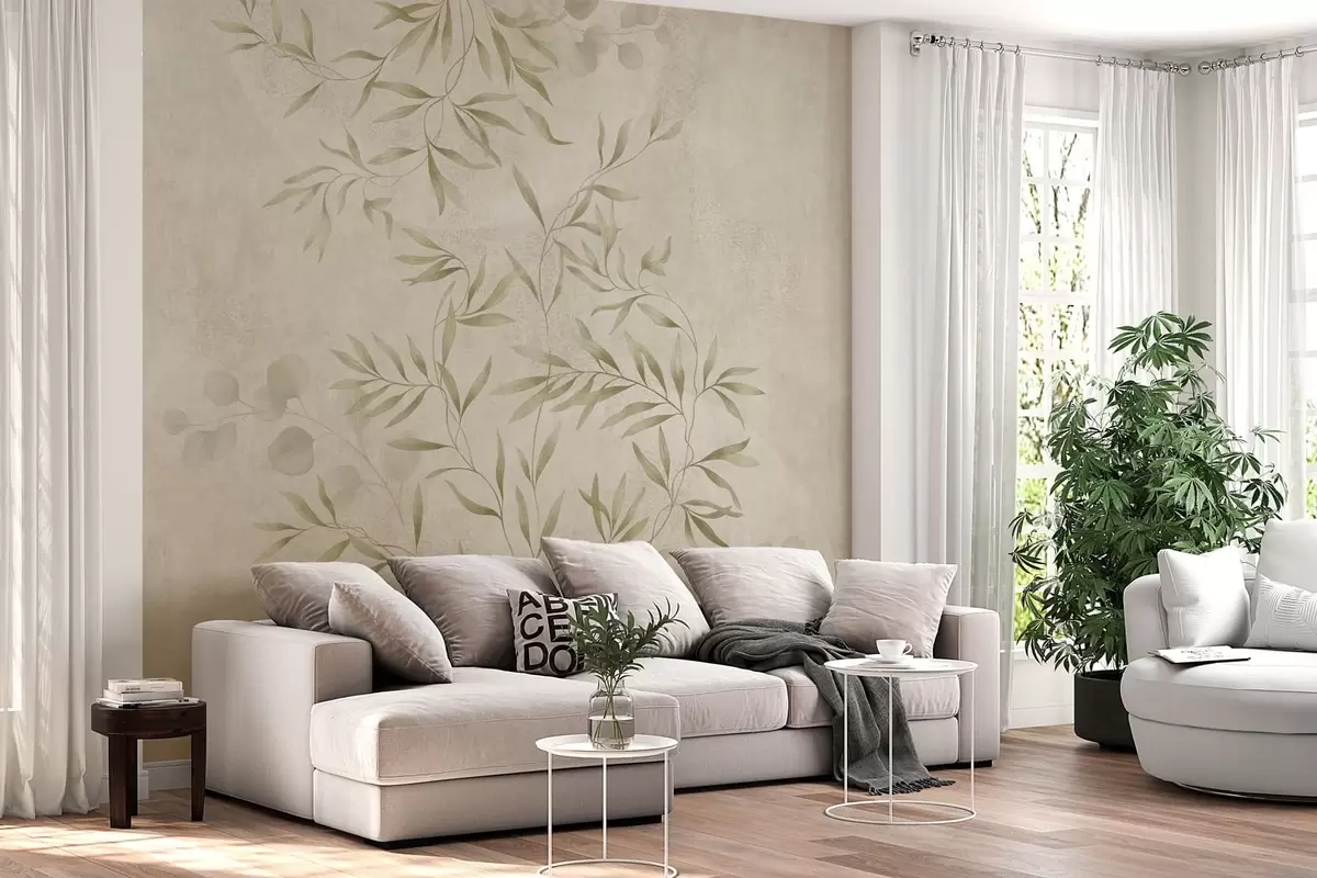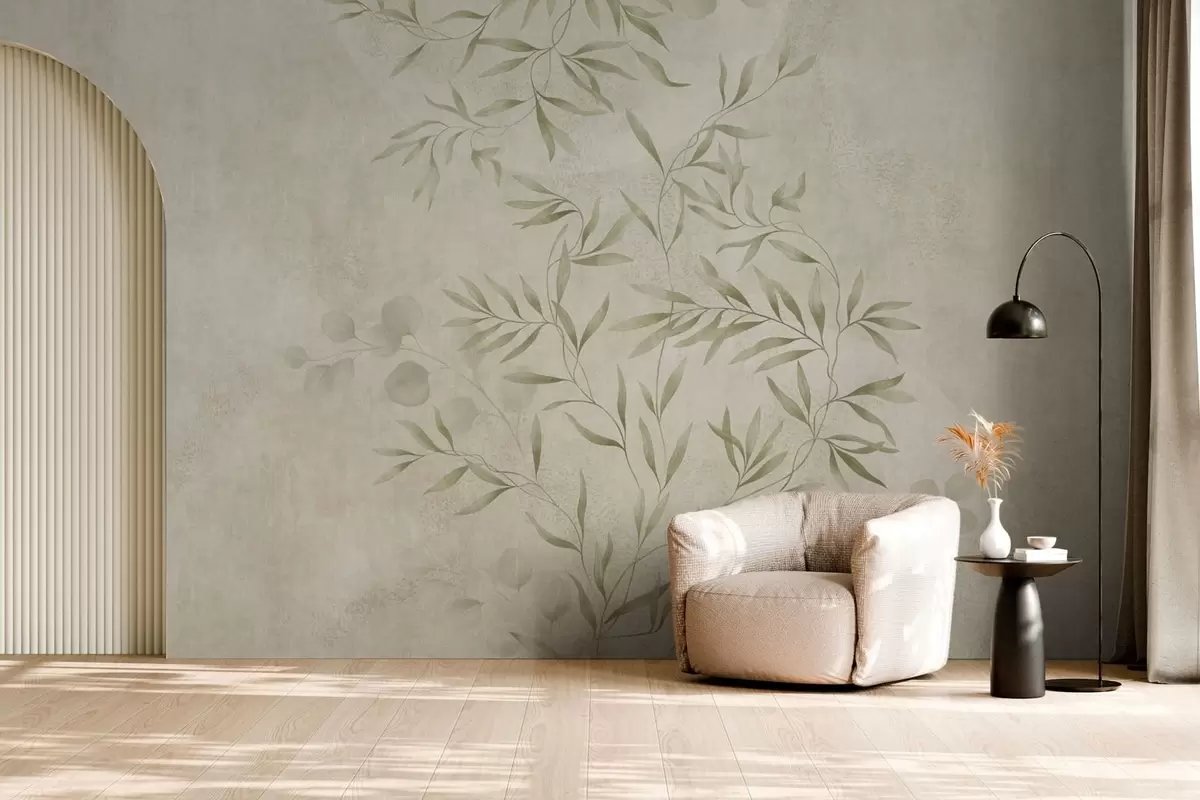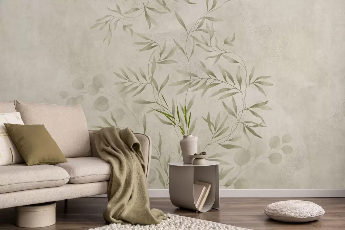 Fototapet Motiv botanic în nuanțe de verde deschis pe un fundal texturat Nr. w05424v1